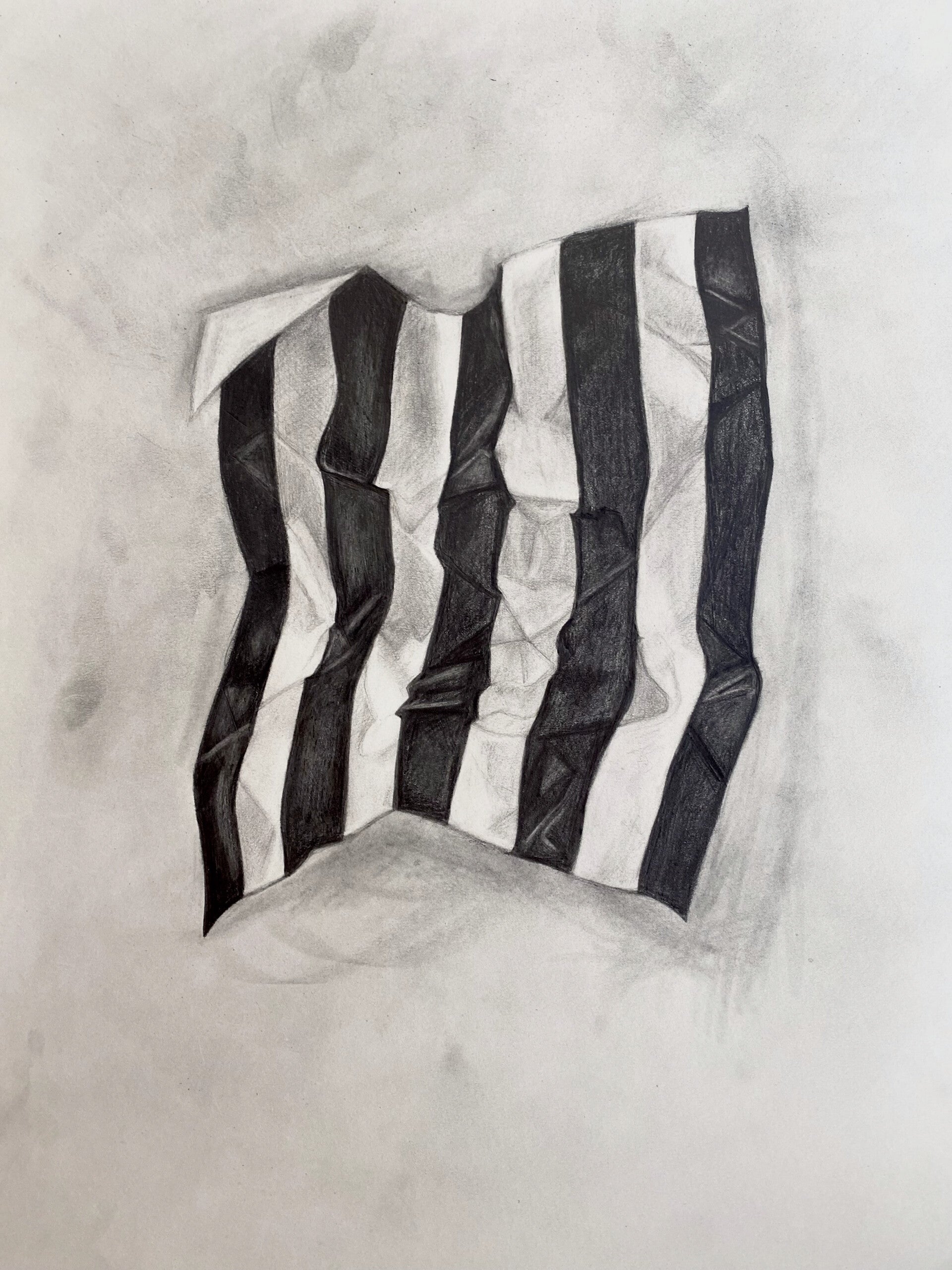 Striped Paper Drawing (right), graphite on 18 x 24 drawing paper.